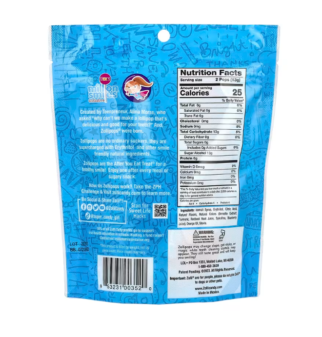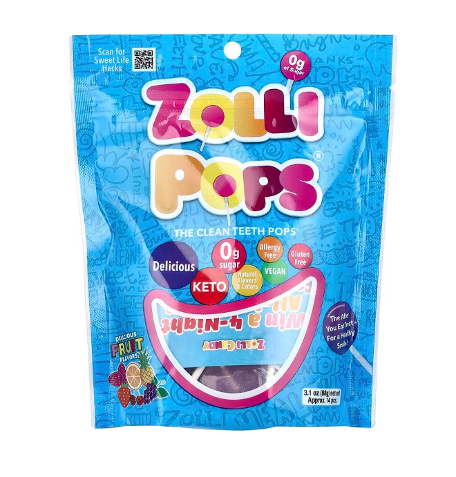 סוכריות הן לא פראיירות רגילות, הן עשירות באריתריטול ובמרכיבים טבעיים אחרים הידידותיים לחיוך Zollipops